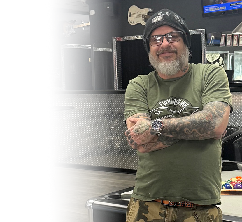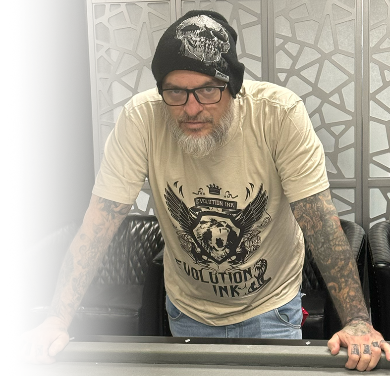 MARKOS Evolution Staff Artist 37 years experience Markos has been tattooing for 36 years. He specializes in black and gray or color. His expertise is in realism. No limits!! Follow MARKOS’S PORTFOLIO
