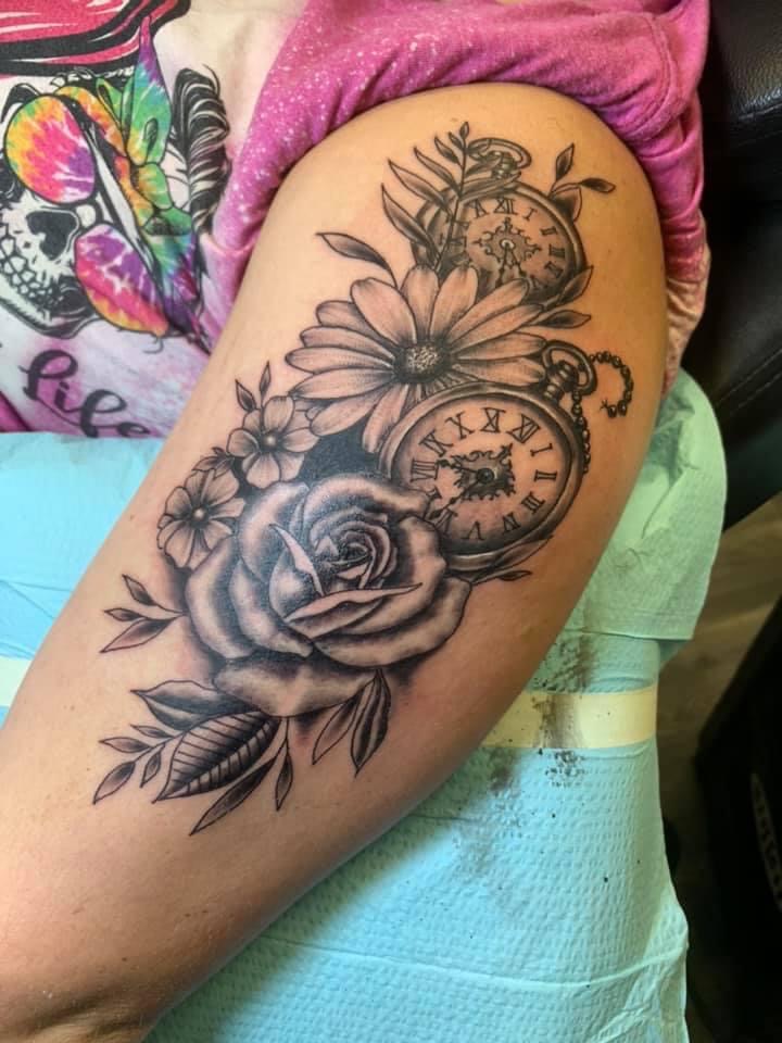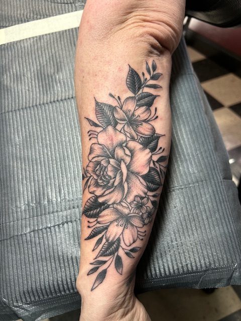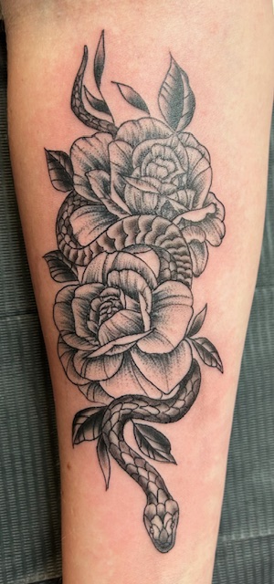 I was born and raised in Fayetteville NC. I started tattooing in 2005. I like to do traditional style tattoos, black and grey, black work and neo-traditional styles.